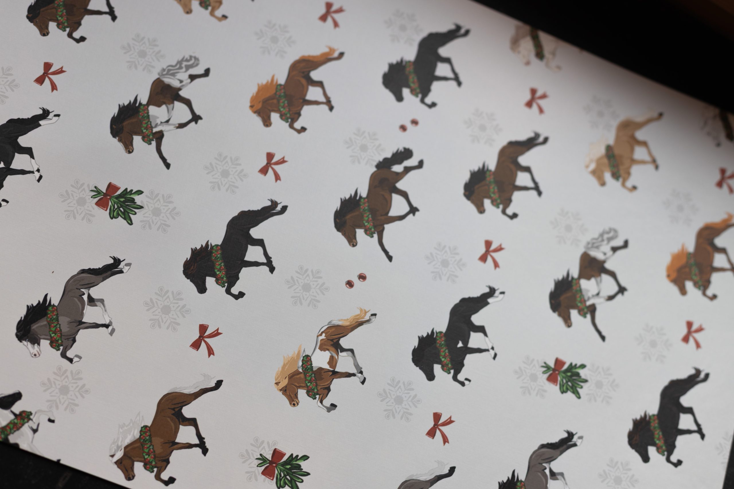 Wunderschöner Leinenstrukturkarton mit winterlichen Islandpferden.