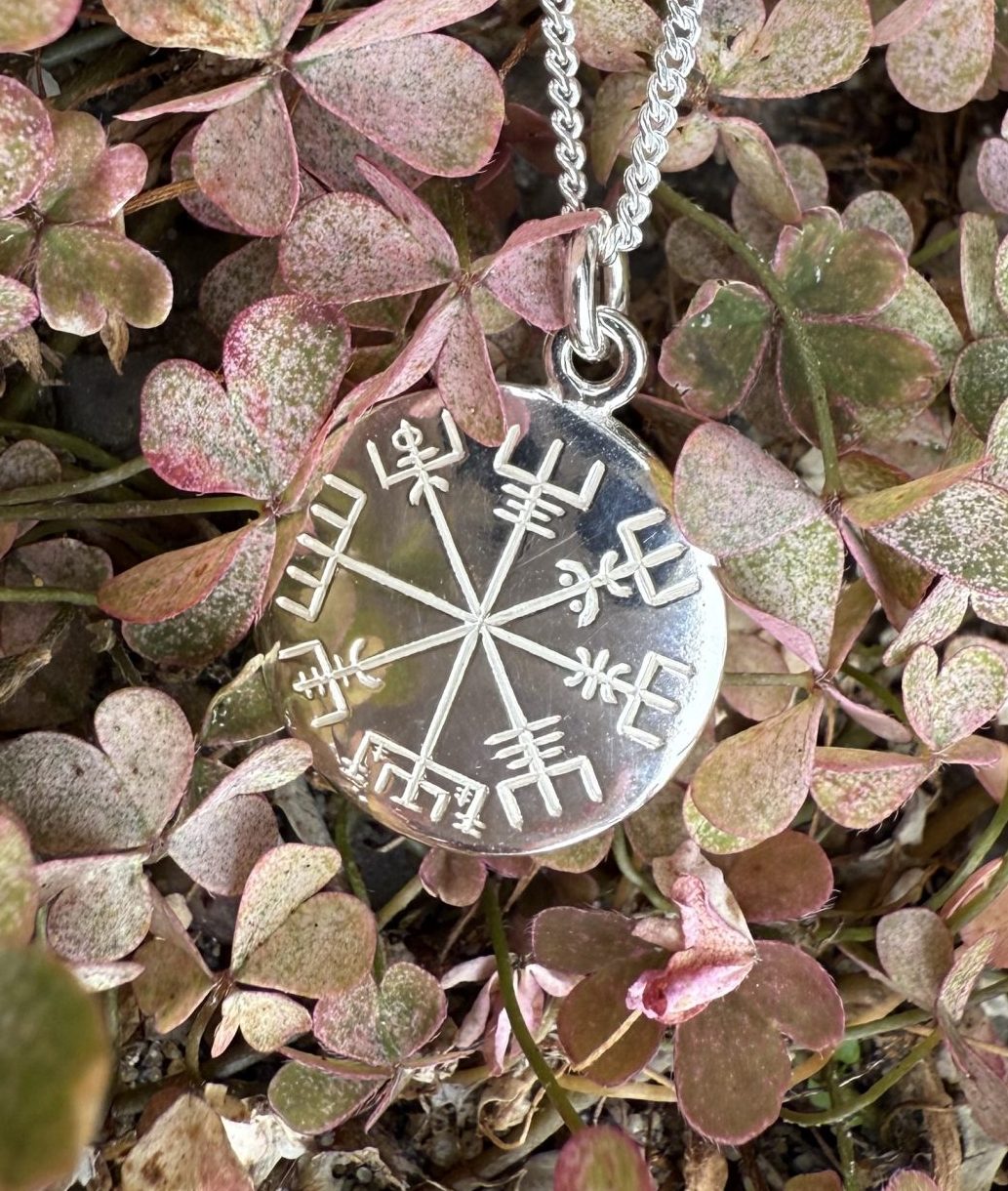 Vegvisír  hat einen Durchmesser von 1,6cm und eine Tiefe von 1mm. Der Anhänger ist aus massivem Sterlingsilber gefertigt, die Silberlegierung ist nickelfrei. Weitere Informationen über die verwendeten Materialien und die beste Pflege für deinen Fine Fellow findest du hier.